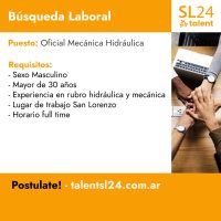 OFICIAL MECÁNICA HIDRÁULICA Oficial 8 enero, 2026 Full Time Urgente Plazo de solicitud cerrado. Descripción del trabajo OFICIAL MECÁNICA HIDRÁULICA Habilidades requeridas con experiencia en rubro hidráulica y mecánica Compartir este post Facebook Twitter Pinterest Imagenes Trabajos relacionados Personal de depósito Presentado Oficial Full Time Urgente