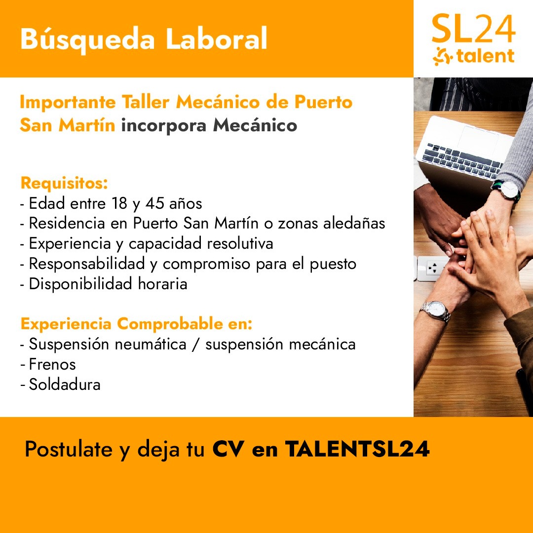 El puesto está orientado a personas entre 18 y 45 años, con residencia en Puerto San Martín o zonas cercanas, que cuenten con experiencia previa y la capacidad de resolver situaciones técnicas de manera ágil y eficaz. La empresa valora especialmente la responsabilidad, el compromiso y la disponibilidad horaria para adaptarse a las necesidades operativas del taller.